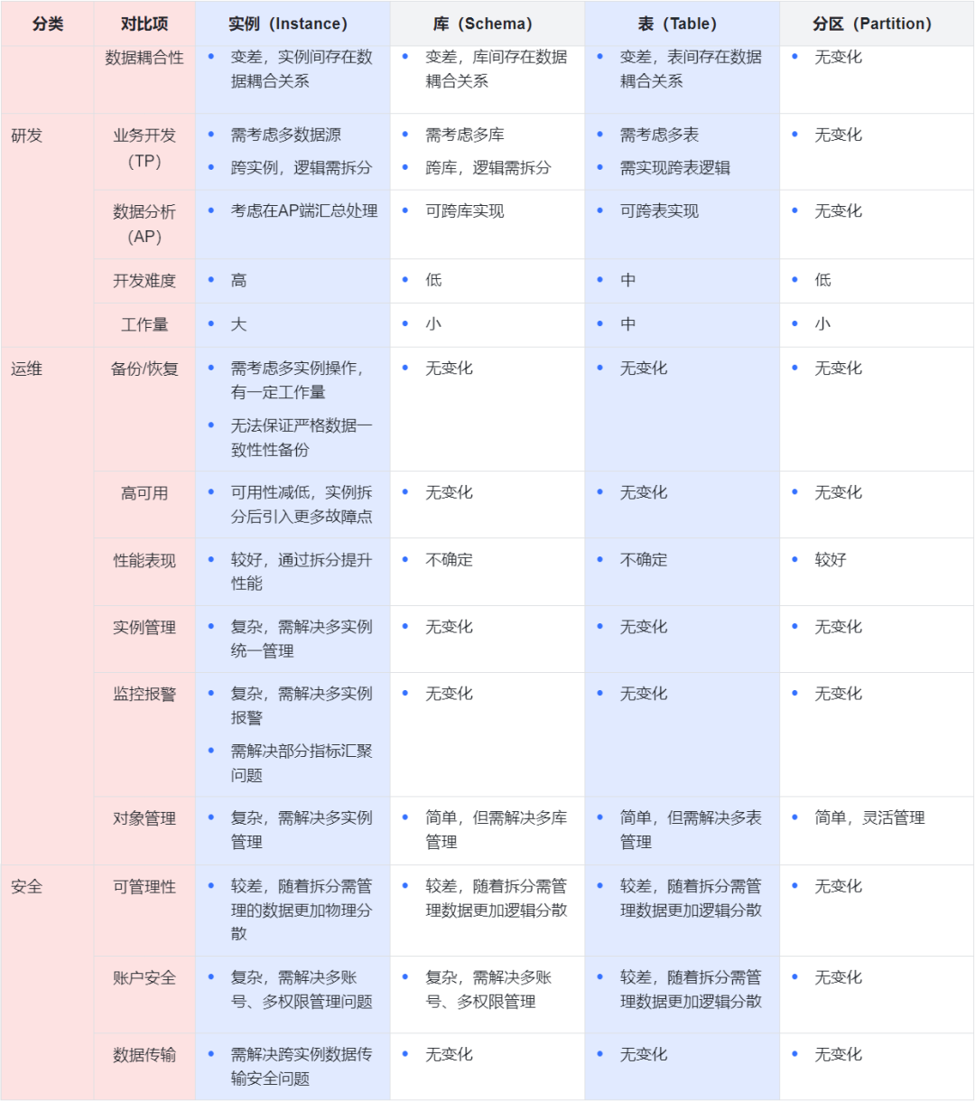 研发从研发角度来看,与前面库级拆分类似,都还存在一定的工作量,但相对难度不大。也多可以通过自研或引入三方数据库访问层来解决。