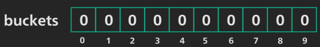 步骤#1.) 我们从一个大小为10的布隆过滤器开始,标记从0到9: