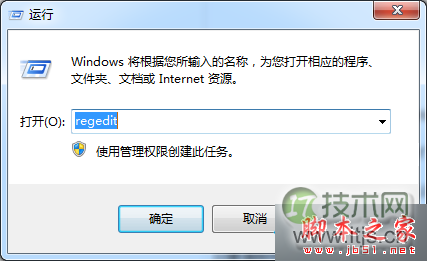1、在运行窗口输入“regedit”打开注册表编辑器;