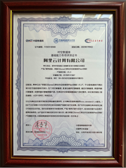 阿里云时空数据库引擎Ganos结合PolarDB,荣获《“时空数据库基础能力专项评测证书”》
