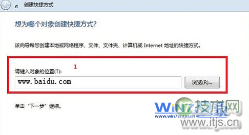 2、页创之后会打开一个“创建快捷方式”窗口,式放我们在“请键入的桌面对象位置”输入你想要输入的网址,比如百度,经常建快捷方然后点击下一步;