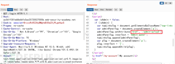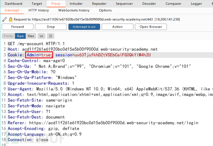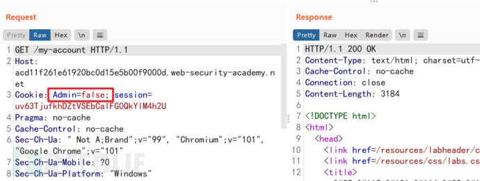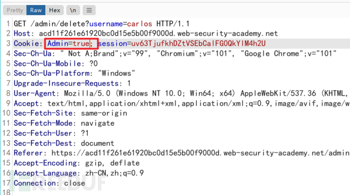 使用 cookie 鉴别用户身份该靶场使用 cookie 中的值来确定是否为管理员的身份