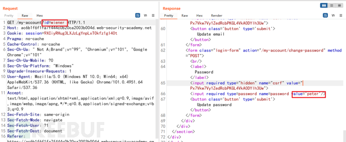 密码泄露造成纵向提权首先该靶场存在横向提权漏洞,所请求的账户页面由 URL 中的参数所决定