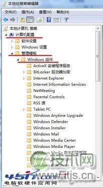 在窗口左侧的重启系统目录中依次打开计算机配置-管理模板-Windows组件-Windows Update。