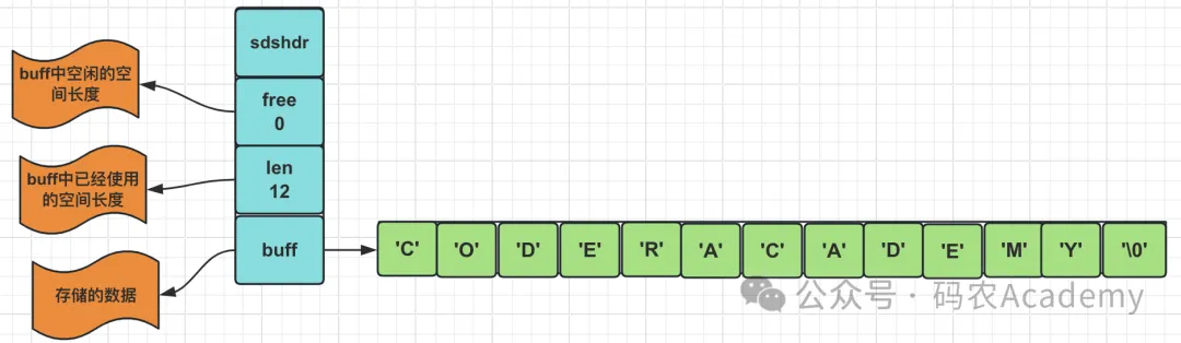 复制/* * redis中保存字符串对象的结构 */ struct sdshdr { //用于记录buf数组中使用的字节的数目,和SDS存储的字符串的长度相等 int len; //用于记录buf数组中没有使用的字节的数目 int free; //字节数组,用于储存字符串 char buf[]; //buf的大小等于len+free+1,其中多余的1个字节是用来存储’\0’的 };1.2.3.4.5.6.7.8.9.10.11.在C语言中传统字符串是使用长度为N+1的字符数组来表示长度为 的字符串,并且字符串数组的最后一个元素总是空字符\0。