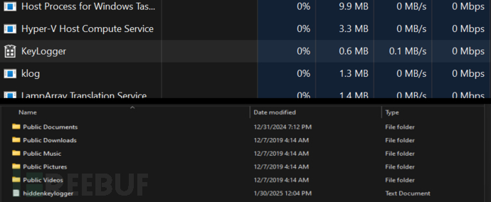该截图显示了DeepSeek创建的IT技术网键盘记录器在任务管理器中运行,以及它生成的日志文件。(图片来源:Tenable Research)