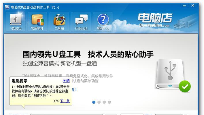 将制作好的U盘插入电脑的USB接口,然后重启电脑,使其能够从U盘启动。
