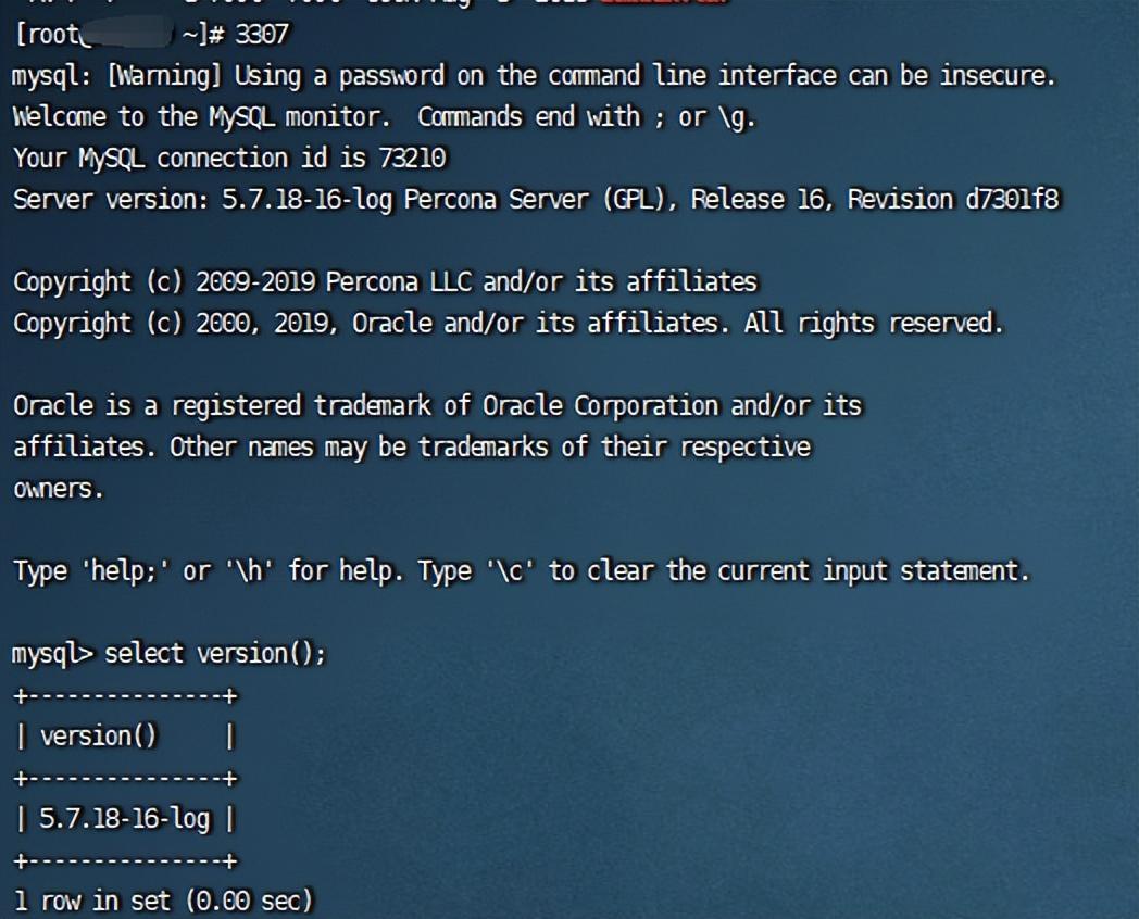 复制numactl --interleave=all /usr/local/mysql5.7/bin/mysqld_safe --defaults-file=/app/data/mysql3307/etc/my.cnf &1.查看版本,是版本预期的情况了。
