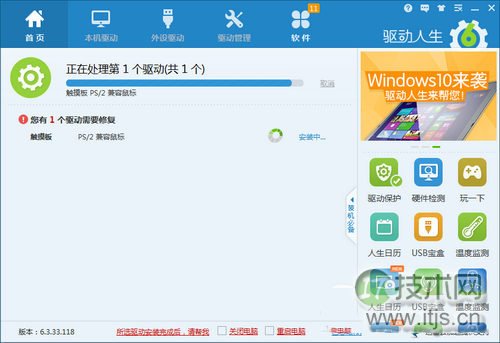 检测完毕后,我们可以看到,触摸板驱动确实存在异常,提示需要修复下驱动,点击立即修复即可。