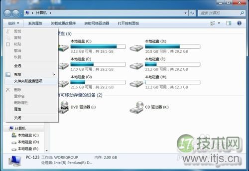 3双击桌面上的计算机图标,打开的标仿窗口单击菜单栏上的服务器租用“组织”——“文件夹和搜索选项”
