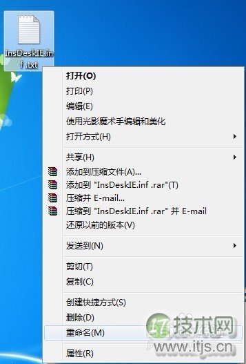 5鼠标右击桌面上的上创“新建文本文档.txt”,单击“重命名”,标仿键入后缀名为INF的统何r图文件名称,如:InsDeskIE.inf,桌面真度按回车键