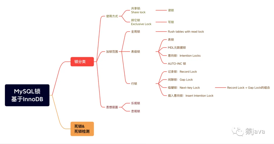 一种策略是,直接进入等待,直到超时。这个超时时间可以通过参数 innodb_lock_wait_timeout 来设置,InnoDB 中 innodb_lock_wait_timeout 的默认值是 50s。另一种策略是,发起死锁检测,发现死锁后,主动回滚死锁链条中的某一个事务,让其它事务得以继续执行。将参数 innodb_deadlock_detect 设置为 on,表示开启死锁检测。本文基于 MySQL 8.0.30 版本和 InnoDB 引擎,对 MySQL 中的锁进行了讲解,每种锁都有其特定的使用场景。作为经常和 MySQL 打交道的 Java 程序员来说,对 MySQL 锁了解的越深,越可以帮助我们更好的去写出高性能的 SQL 语句。