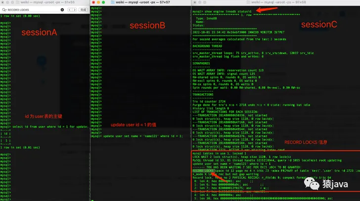 where id = 1;查看 InnoDB 监视器中记录锁数据