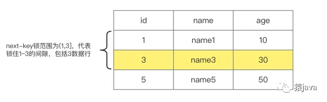 Gap Lock:间隙锁,锁住两个索引记录之间的间隙上,由 InnoDB 隐式添加。比如(1,3) 表示锁住记录 1 和记录 3 之间的间隙,这样记录 2 就无法插入,间隙可能跨越单个索引值、多个索引值,甚至是空。