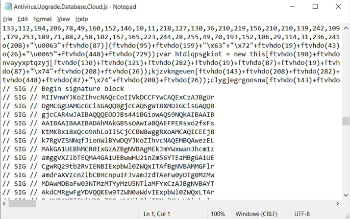 图5. JS文件带有畸形签名,可以利用Windows 0 day 漏洞(来源:BleepingComputer)