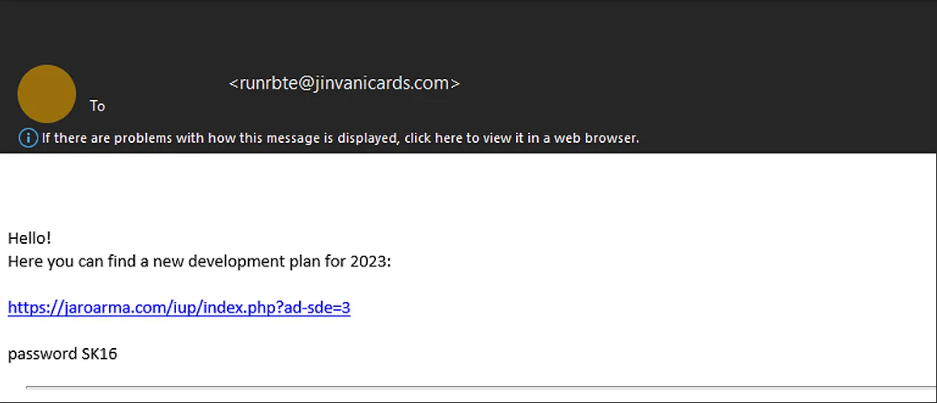这起新的网络钓鱼活动始于一封电子邮件,邮件中附有指向所谓文件的链接和文件的密码。