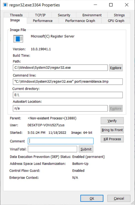 图6. 启动QBot DLL的Regsvr32.exe(来源:BleepingComputer)
