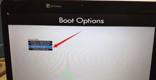选择完毕后,保存并退出BIOS设置界面。电脑将会重新启动,并从插入的惠普光盘引导。