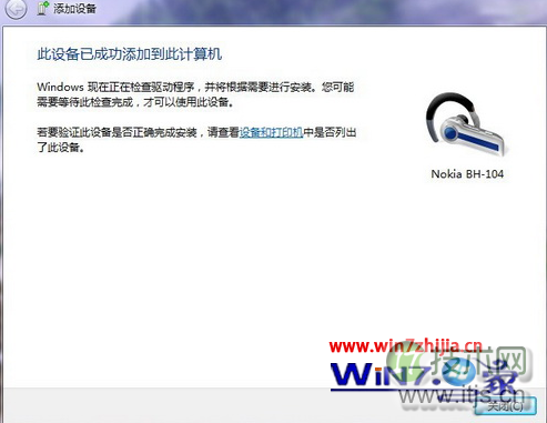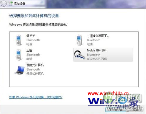 2)在调加设备区域中能看到我们需要连接Nakia BH―104 ,听歌选择该设备点击――下一步;