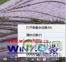 7)接着鼠标右击通知区域小喇叭选择“播放设备”项;