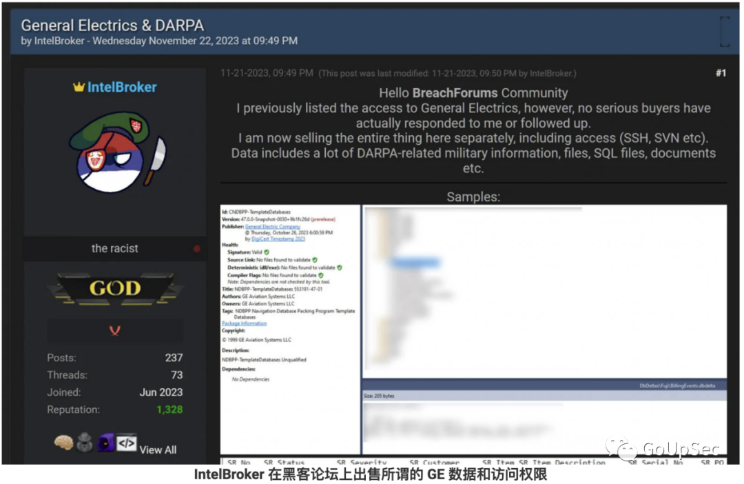 本月早些时候,黑客一个名为IntelBroker的攻击黑客在黑客论坛上以500美元的价格出售通用电气“软件开发管道”的访问权限。