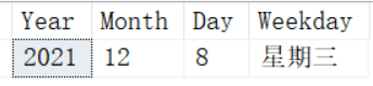 ,DATEPART(weekday,getdate()) Weekday;1.2.3.4. 结果: