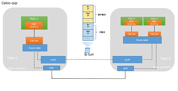 默认部署出来是 calico 的 ip-in-ip 的模式 查看宿主机网卡,会发现多了个 tunl0 网卡,这个是建立 ip 隧道的网卡
