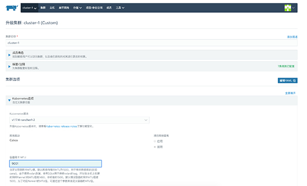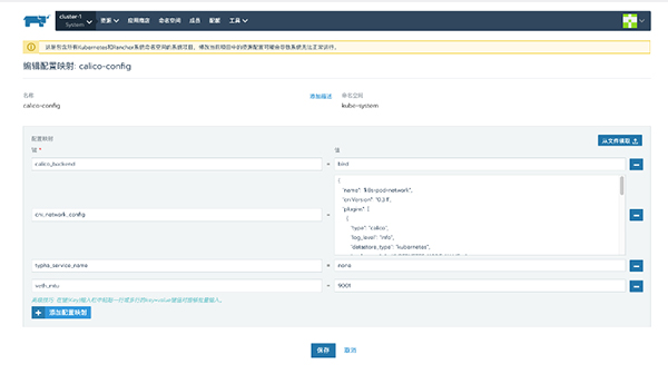 配置网卡 MTU,此时通过 system 项目下 calico-config 文件可以看见对应的 mtu 设置