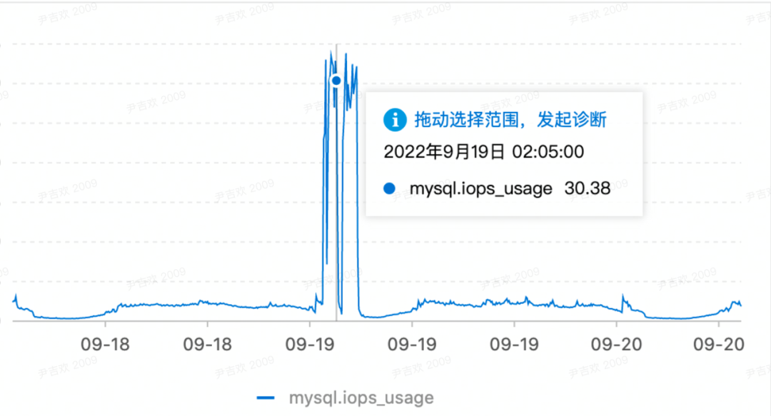 根据告警的时间点,去看了从节点数据库的监控,那段时间确实IO较高,如下图所示: