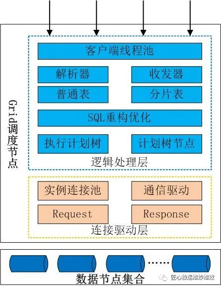 (二)EverDB执行计划EverDB分布式数据库由Grid调度层、数据节点、配置节点、管理台组成。Grid调度层作为分布式数据库的调度节点,接收并解析SQL,将SQL语句重构改造,支持涉及分片表和非分片表两种类型的执行计划分析。
