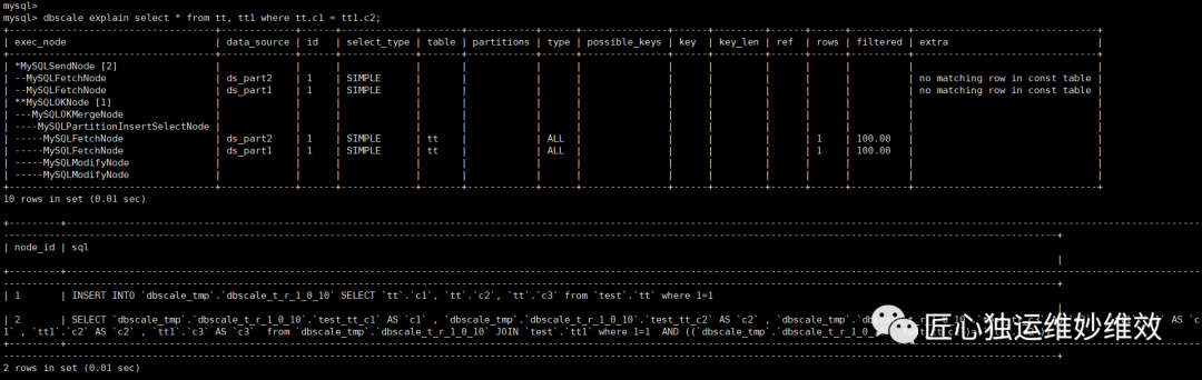 (三) 如何查看执行计划?展示执行计划,只需在查询的SELECT关键字之前增加DBSCALE EXPLAIN。具体语法如下: