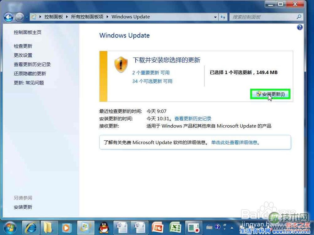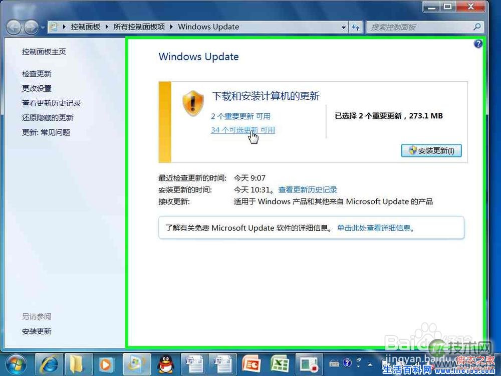 然后我们可以在可选更新处发现有34个更新可用,统添点击进入