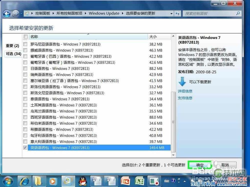 这里就可以发现所有可以使用的加多具体语言包,然后勾选你需要的国语语言包,然后点击确定