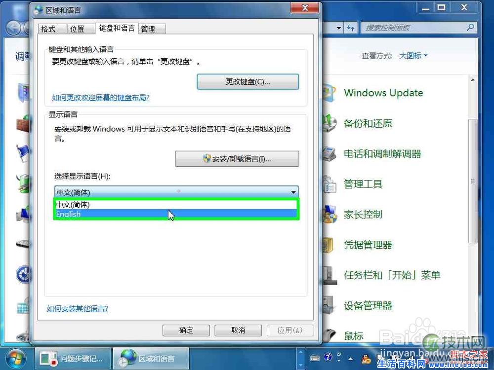 待安装更新结束之后,步骤我们可以切换我们的统添界面语言了。打开开始,加多具体选择控制面板