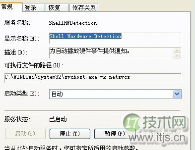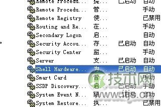 2、办法在右边服务列表中,电打开找到"Shell Hardware Detection"服务项,双击打开,将新窗口中的"启动类型"设为"禁用"。