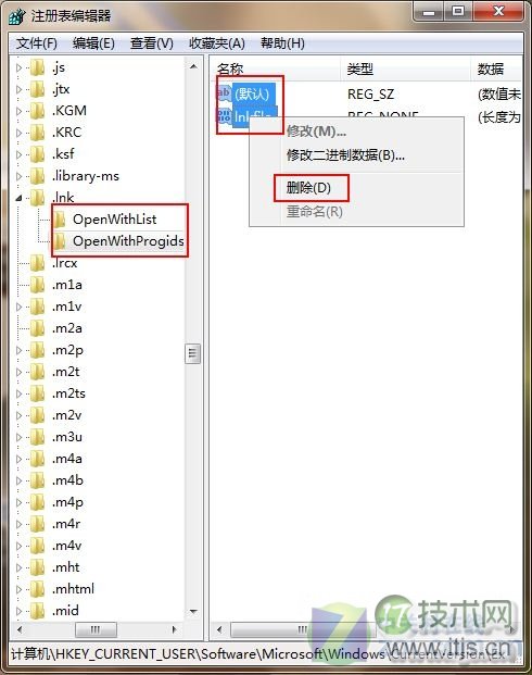 找到: 计算机HKEY_CURRENT_USERSOFTWAREMICROSOFTWINDOWScurrentversionExplorerFileExts.lnk