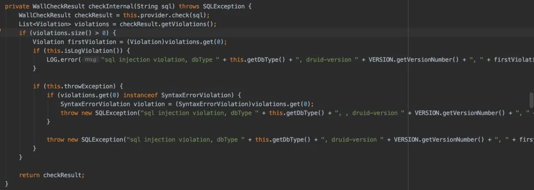 它里面有个checkInternal方法,会对sql语句做一些校验,如果不满足条件,云服务器提供商就会抛异常: