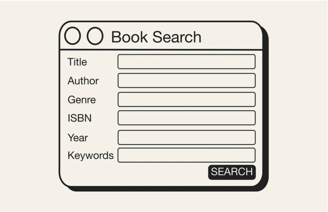 如果你去图书馆,通常角落里会有一台电脑,可以帮助你找到一本具有更具体属性的书,比如书名、国际标准图书编号、出版年份或一些关键词。根据输入的网站模板值,就可以查询存储可用书籍信息的数据库。不过,这个数据库通常是一个传统的关系数据库。