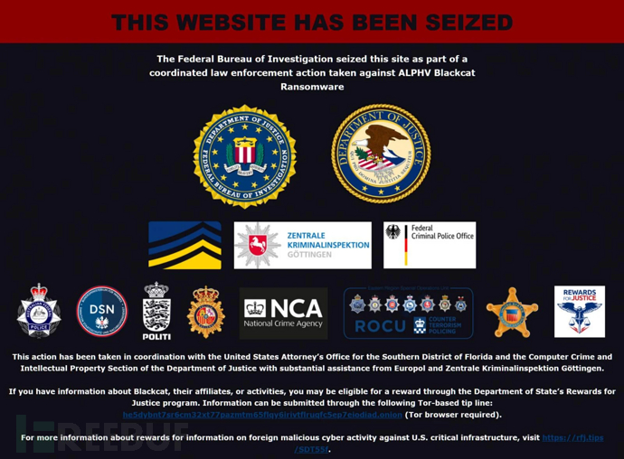 ALPHV/BlackCat 勒索软件扣押横幅(图片来源:Bleeping Computer)