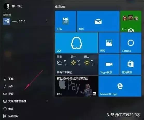 在【设置】-【个性化】-【开始】面板下,你会看到一段标识为【选择哪些文件夹显示在“开始”屏幕上】的蓝字提示。点击后,会出现一个包括【文档】-【下载】-【音乐】-【视频】的项目列表,简单来讲这个列表中的选项勾选后会出现在开始菜单左下方,取消勾选则不出现在开始菜单里!