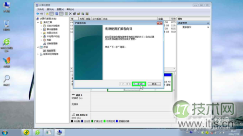 6、继续:右击E盘,选择“扩展卷”,按默认操作。“完成”后就可以看到E盘空间回来了,又变成了160+G了。。在打开资源管理器,看到Q盘已经无影无踪了。