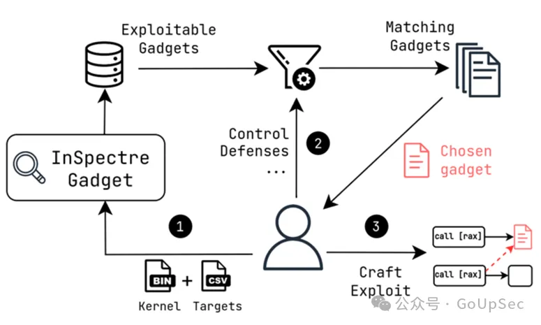 研究者指出:当前的缓解措施是围绕隔离可利用的gadget来消除攻击面。然而,VUSec研究人员使用定制的“InSpectre Gadget”分析工具发现,Linux内核中仍然存在可利用的gadget(下图):