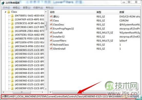 2.依次展开HKEY_LOCAL_MACHINESYSTEMCurrentControlSetControlClass{4D36E965-E325-11CE-BFC1-08002BE10318} 如下图所示