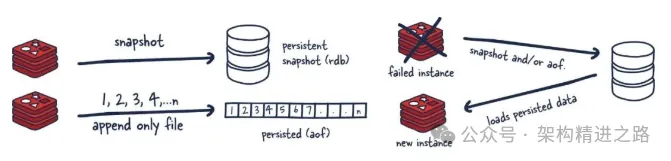 这两个流程可以让 Redis 拥有长期存储,支持各种复制策略,并启用更复杂的拓扑。如果 Redis 未设置为持久化数据,则在重新启动或故障转移时数据会丢失。如果在重启时启用了持久化,它会将 RDB 快照或 AOF 中的所有数据加载回内存,然后实例可以支持新的客户端请求。