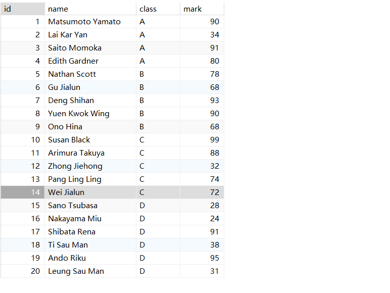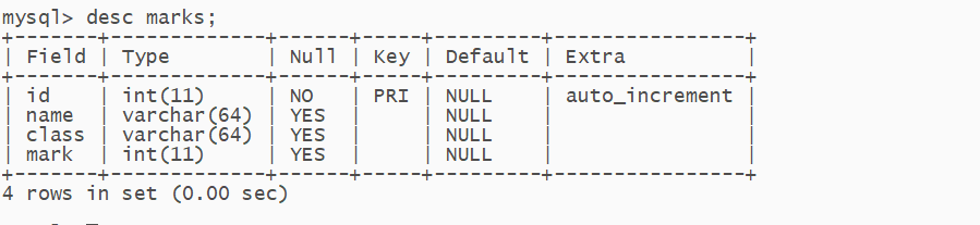 WHERE condition;为了演示 FORCE INDEX 的示例,我们将使用下面的表结构和数据,关于一张分数表marks。