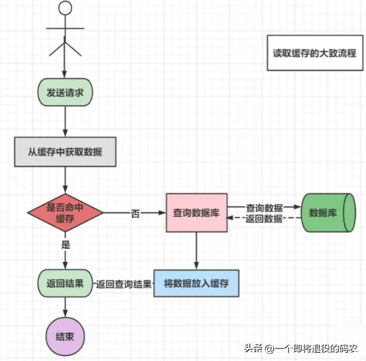 缓存由于其高并发和高性能的特性,已经在项目中被广泛使用。在读取缓存方面,大家没啥疑问,都是按照下图的流程来进行业务操作。