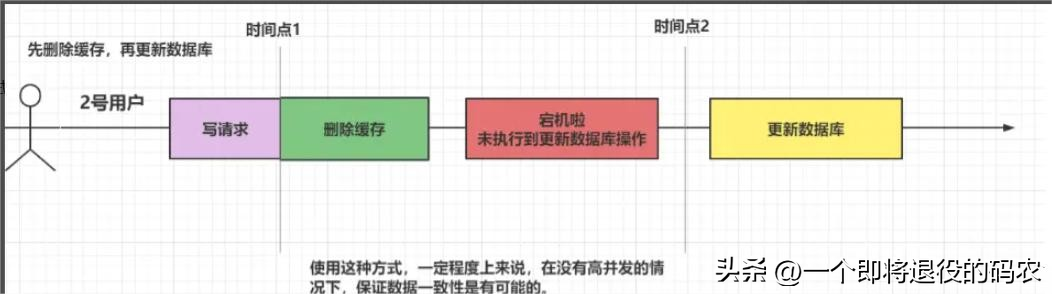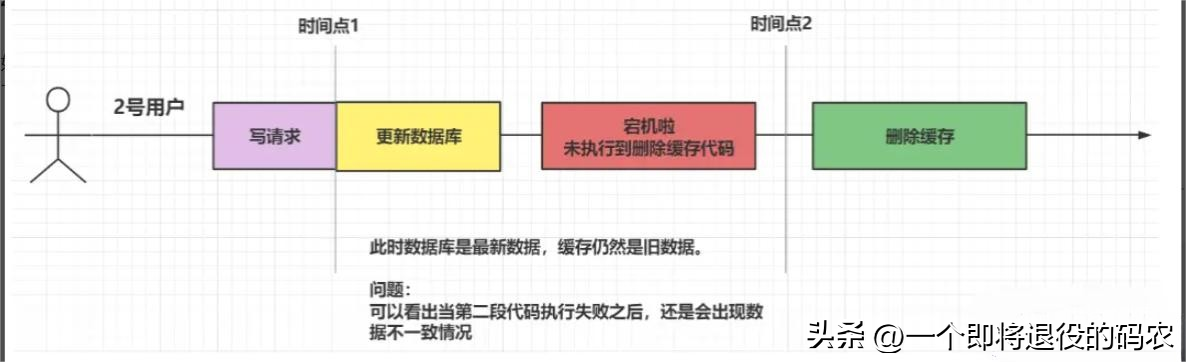 如果我成功更新了缓存,但是在执行更新数据库的那一步,服务器突然宕机了,那么此时,我的缓存中是最新的数据,而数据库中是旧的数据。