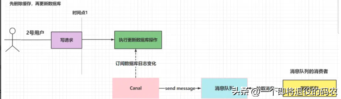 解决这样的问题,其实最好的方式就是在执行完更新数据库的操作后,先休眠一会儿,再进行一次缓存的删除,以确保数据一致性